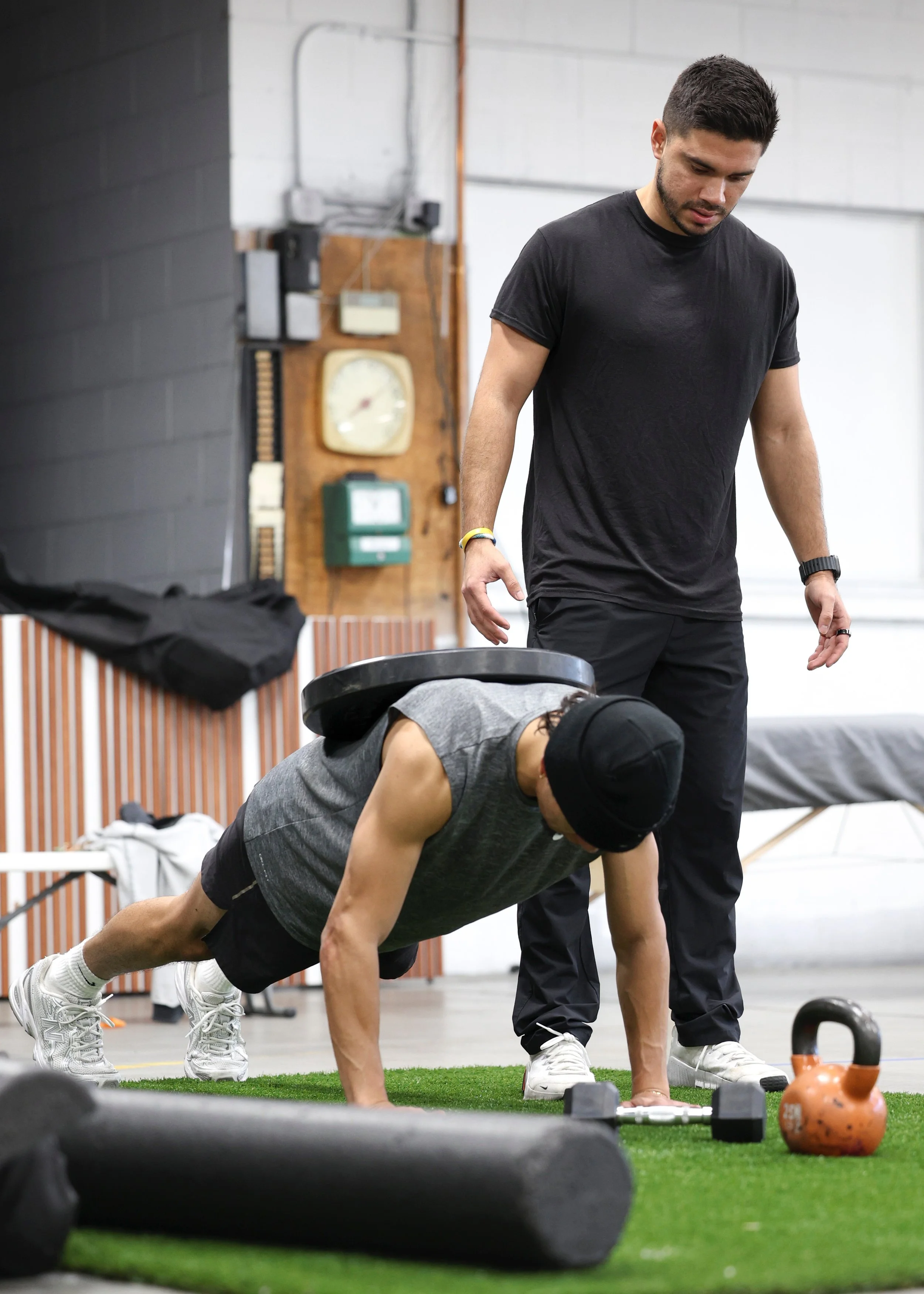 Juan graduated from California State University, Northridge with a Kinesiology degree, where he developed a strong foundation in health and human performance. Over the course of five years at Essers of Los Angeles, he helped achieve their health and fitness goals through personalized training and dedicated support. Now, a strength coach at Base, he aspires to continue to thrive and prosper as he helps his clients reach goals that previously seemed unattainable. Juan’s coaching expertise spans a diverse spectrum, from developing young adolescents to refining the performance of professional athletes.